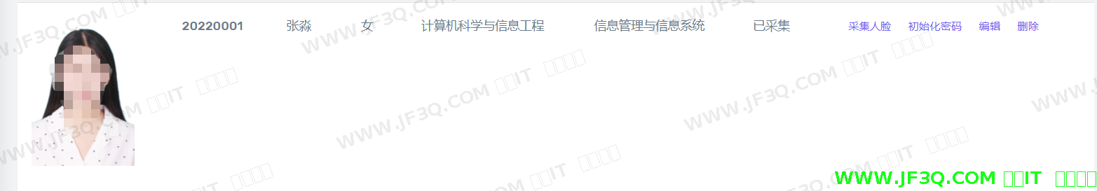采集“祝无双”学生信息,生成人脸特征码存入数据库中