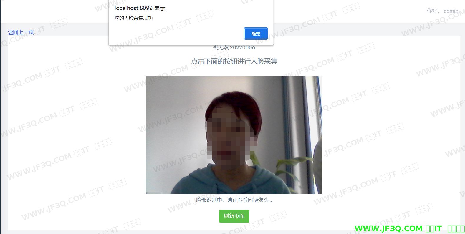 图5-9 学生“祝无双”人脸采集成功图