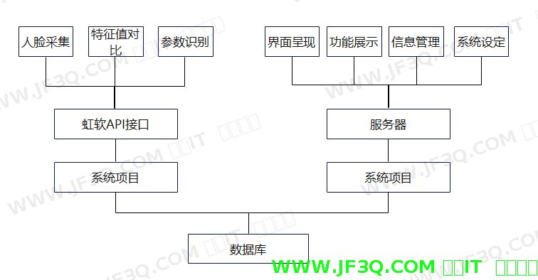 在本次课题设计的过程中,总体的设计思路分为两部分,第一部分是进行系统架构,第二部分是实现视频目标检测功能。在系统架构部分,首先是针对这次设计,确定好主要功能和框架分类,根据不同需求以此来实现前端设计与布局的合理性。并且要明确教学中院系、专业以及课程的相互独立之处。针对视频检测功能的实现,是在虹软人脸识别算法的基础上,对每位学生进行人脸特征采集录取到相应的数据库中,而后进行摄像头调用,对捕捉到的人脸进行一个读取,计算捕捉到的人脸信息码相似度比值,从而判定是否为同一人进行签到,从而实现高效的在线考勤方式。