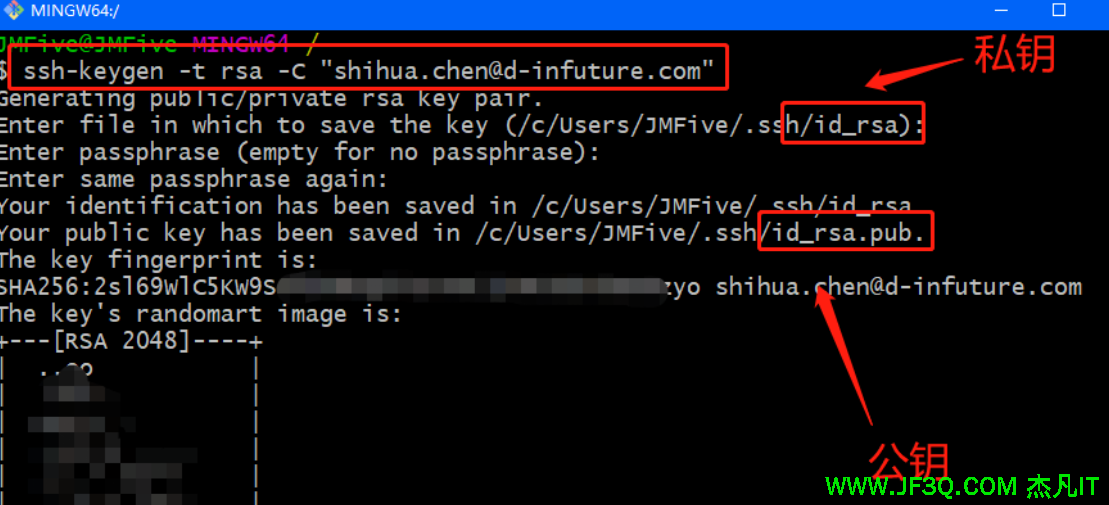 ssh-keygen -t rsa -C "1913284695@qq.com"注意:这里的邮箱一定要指定呀!!!