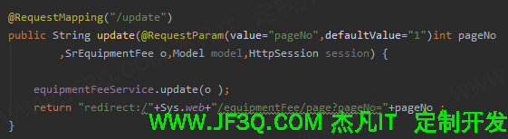 当学生输入评价建议后点击学的按钮,请求/web/equipmentFee/update?id=设备使用记录id&pj=评价建议内容&is_pj=1,调用WebSrEquipmentFeeContrller.update()实现记录的更新,更改is_pj为1,代码如下: