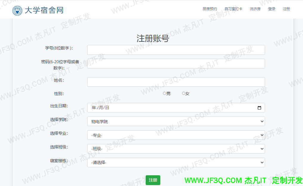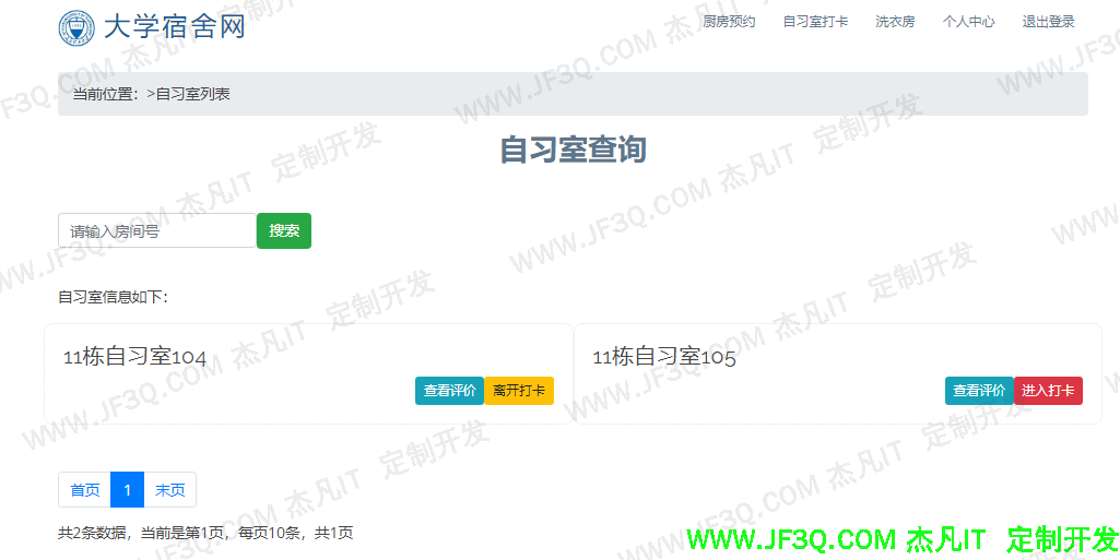 Springboot开发的大学生宿舍共享厨房系统宿舍自习室宿舍洗衣房系统寝室系统技术文档论文功能部分