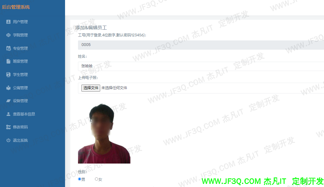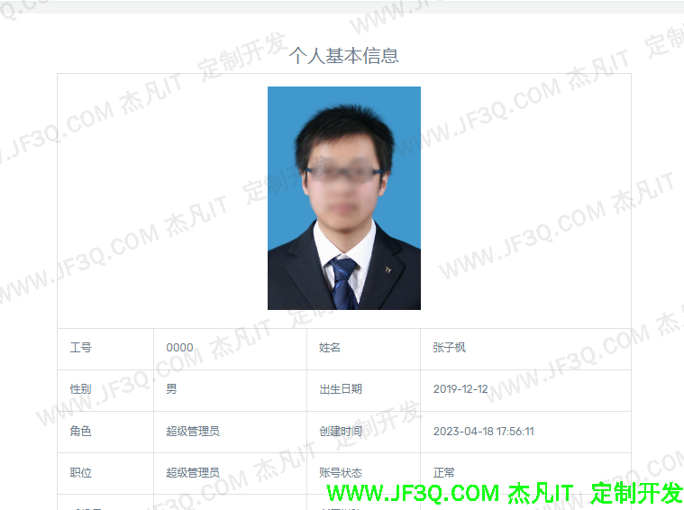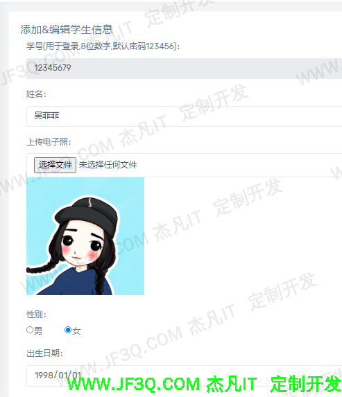学生也可以查看自己的基本信息,修改自己的基本信息,上传头像,页面如下: