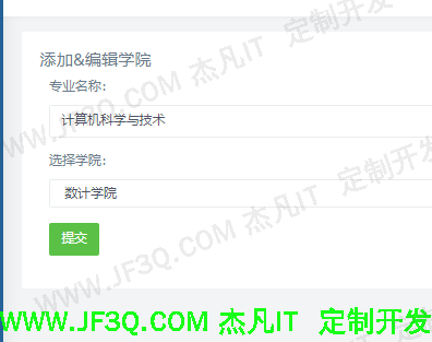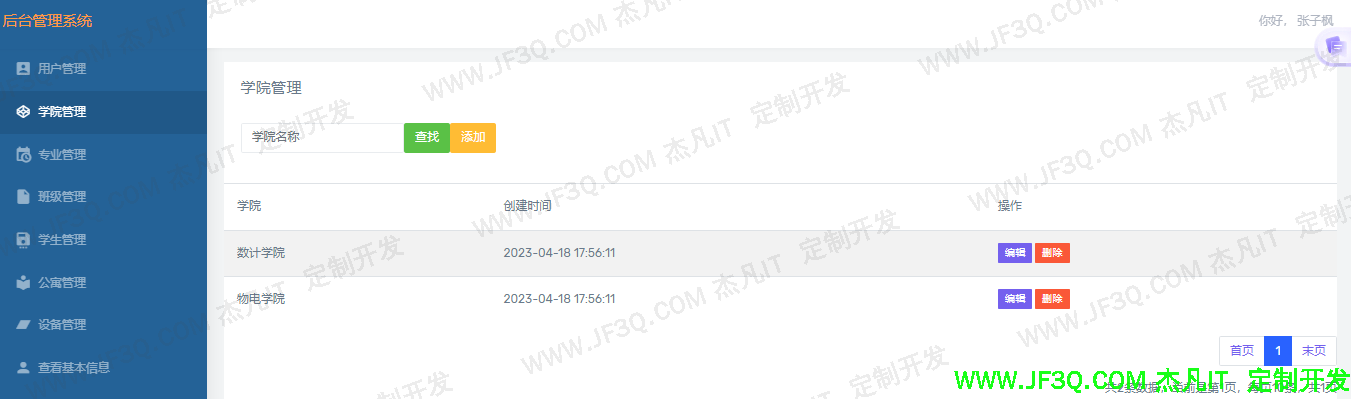 管理员可以对学院进行添加、编辑、删除和搜索,页面如下: