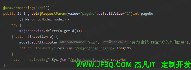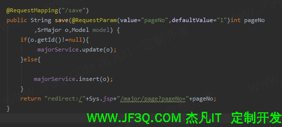 当表单提交请求/jsp/major/save,根基id是否为null,判断当前是添加还是编辑操作。Id为空表示添加,不为空表示更新,代码如下: