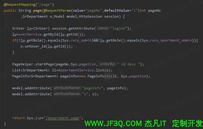 调用departmentController.page()使用departmentService.list()进行查询,使用pageHelper插件分页 。代码如下: