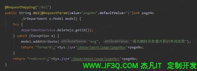 当表单提交请求/jsp/department/save,根基id是否为null,判断当前是添加还是编辑操作。Id为空表示添加,不为空表示更新,同时还要判断学号唯一性,代码如下: