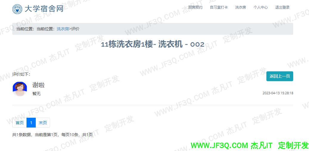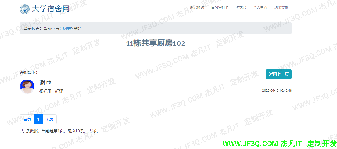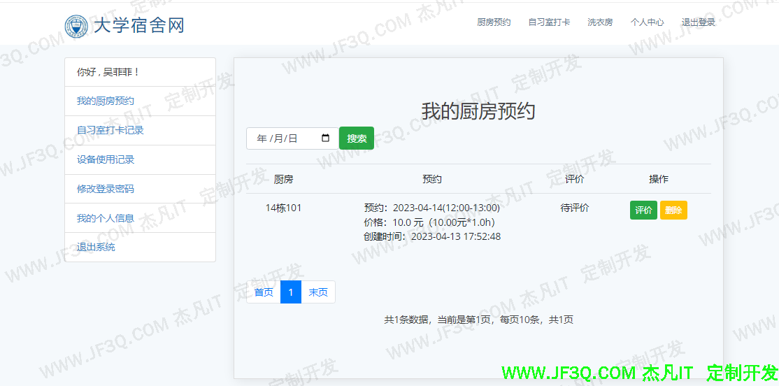 学生可以看到自己支付成功的厨房预约信息,使用完厨房后可以进行评价或者删除。页面如下: