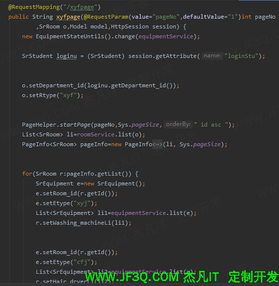 调用equipmentController.page()使用equipmentService.list()进行查询,使用pageHelper插件分页 .代码如下: