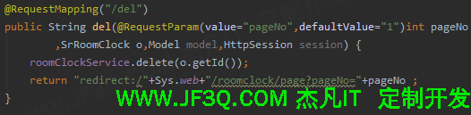 学生也可以删除该记录,请求/web/roomclock/del?id=自习室打卡记录id,调用WebSrRoomappContrller.del()根据id删除。代码如下: