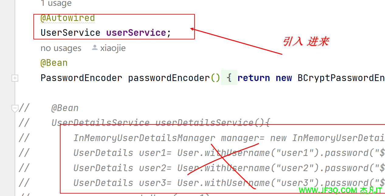 }其中 passwordEncoder()方法表示密码加密方式, 一般使用 BCryptPasswordEncoder 方式。这样就创建了四个用户,创建用户时还需指定其角色,这里暂时这样设置用户角色: