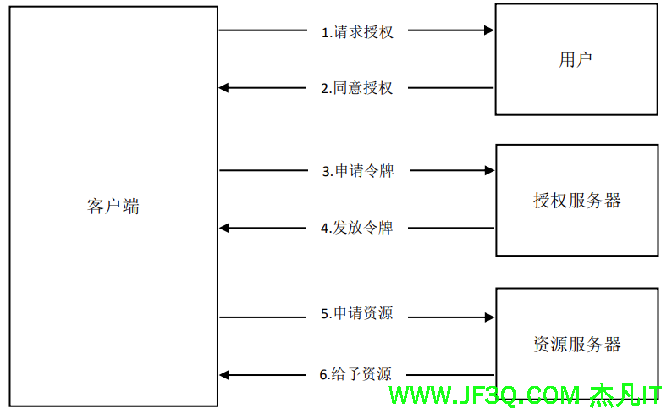 OAuth 协议的授权模式共分为 4 种,分别说明如下:客户端 用户 授权服务器 资源服务器。