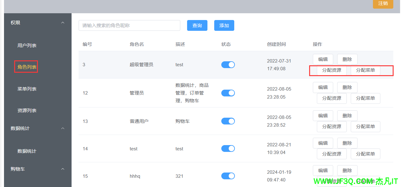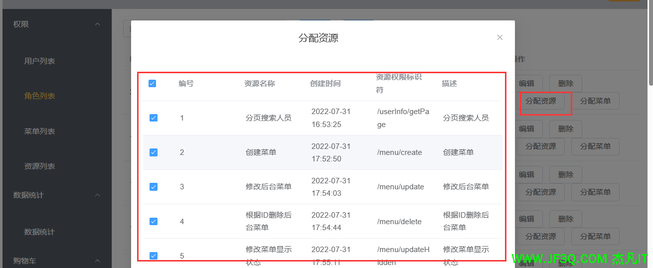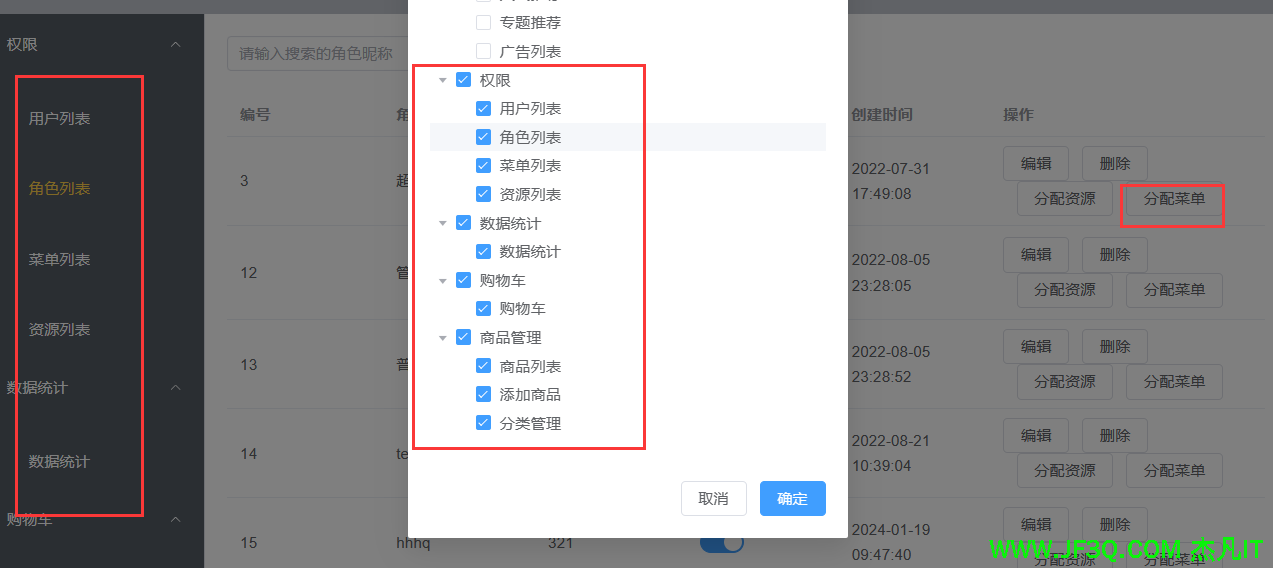 4、角色列表、增删改查外加权限和菜单的动态分配
