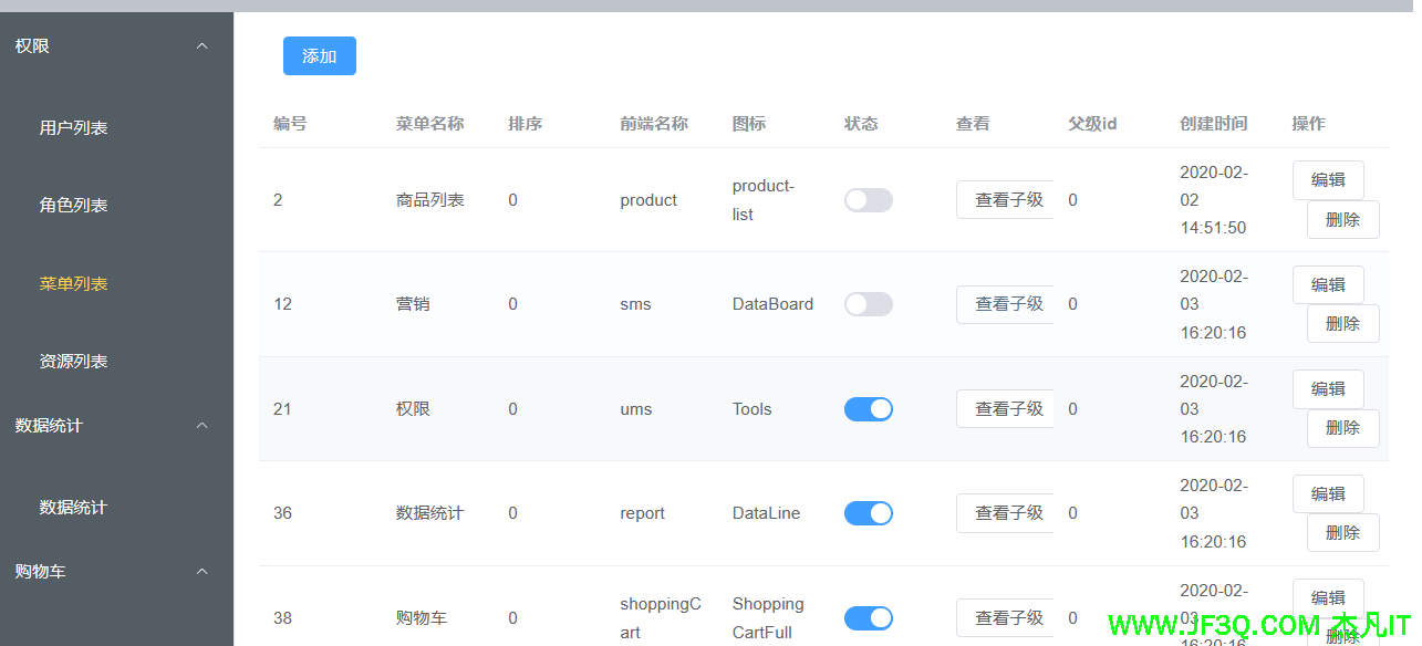 5、菜单列表、增删改查