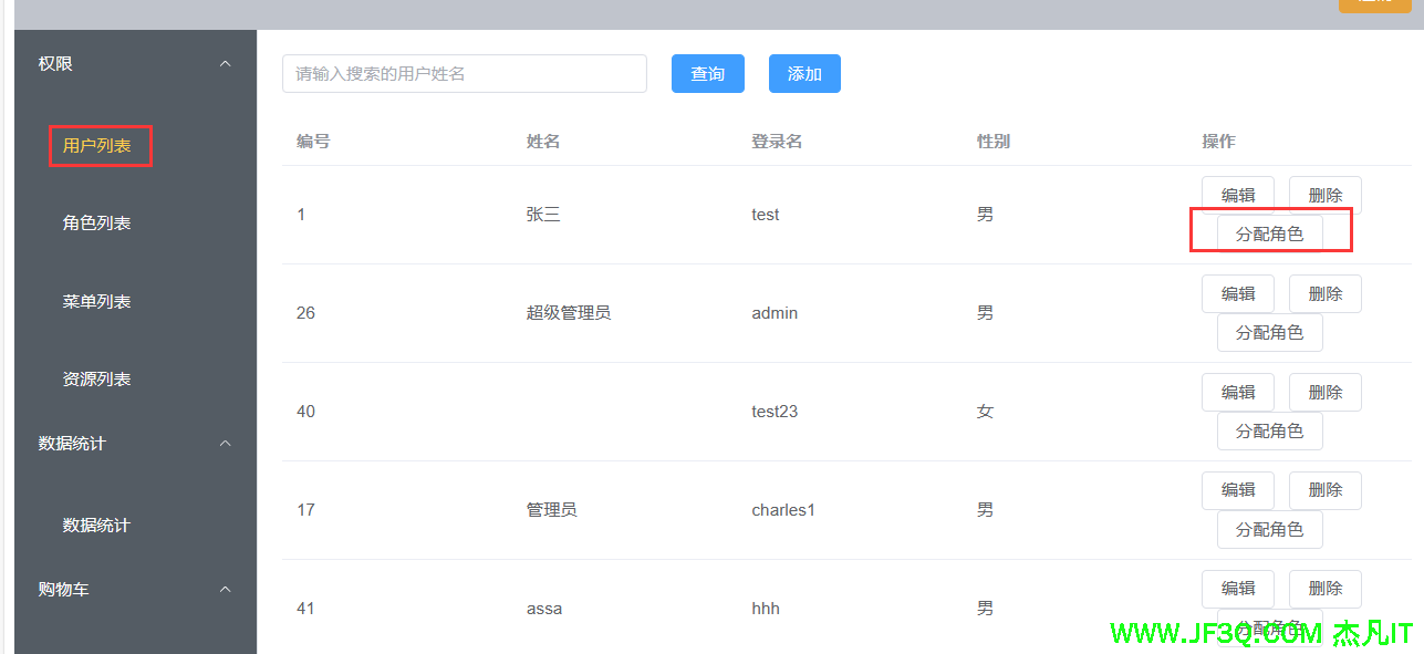 3、用户列表、增删改查外加角色动态分配