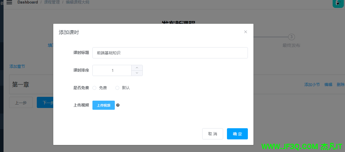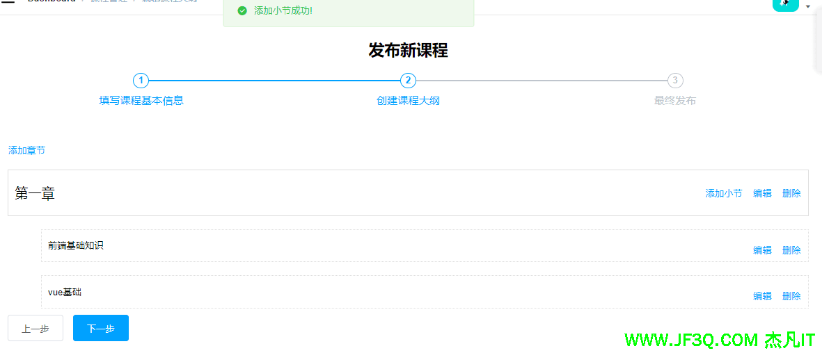 发布课程的时候,先添加章节,后添加小节