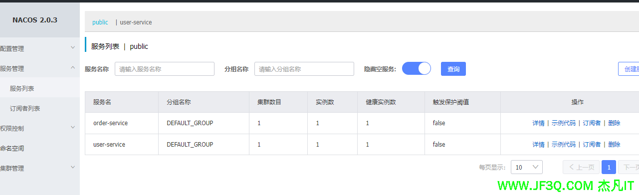 public class UserApp {启动项目后,在nacos的控制台看到的效果如下