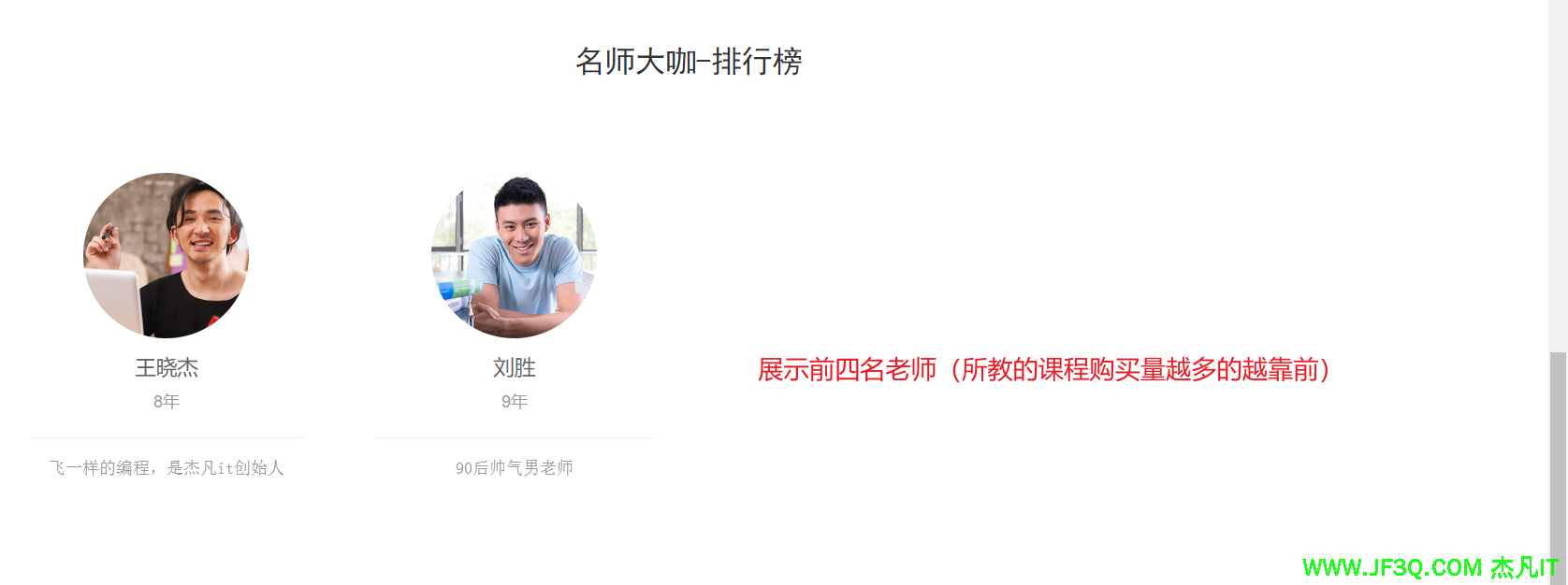 我要做的功能是:首页的名师大咖面板展示最受欢迎的四位老师(所授的课被购买的越多越牛)