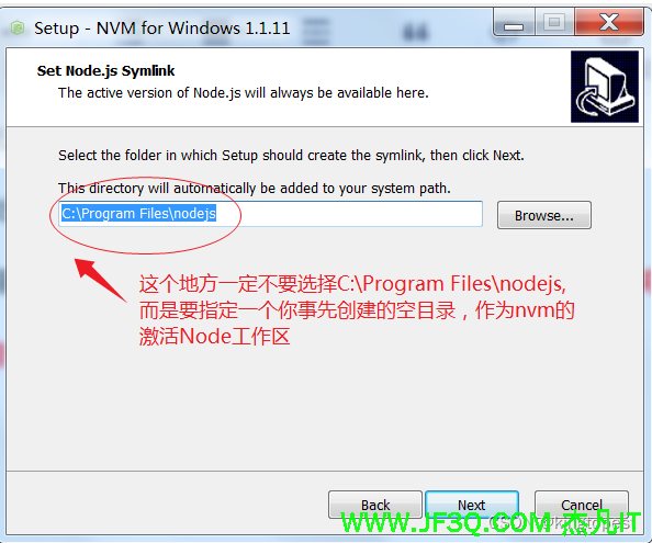 nvm的安装目录选择非c盘后,他还会让你选一个nvm的node工作区,这个目录也要选其他盘哦