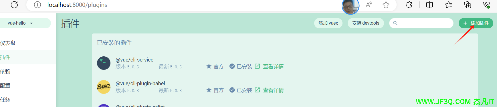 对于我们用 vue ui 生成的项目来说,我们可以直接在网页中直接添加插件就行了。