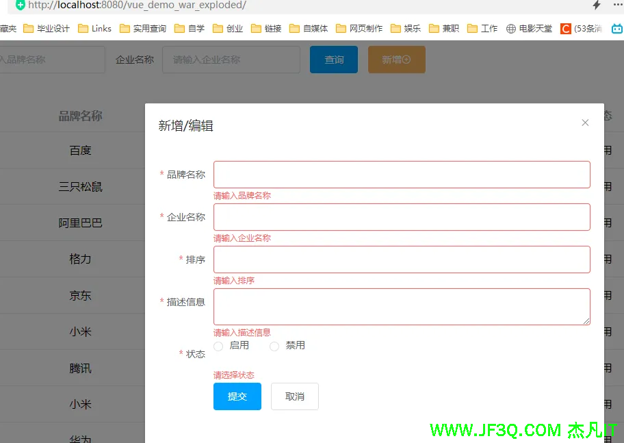 一个品牌数据的增删改查,表单验证,分页带条件查询等,效果图如下