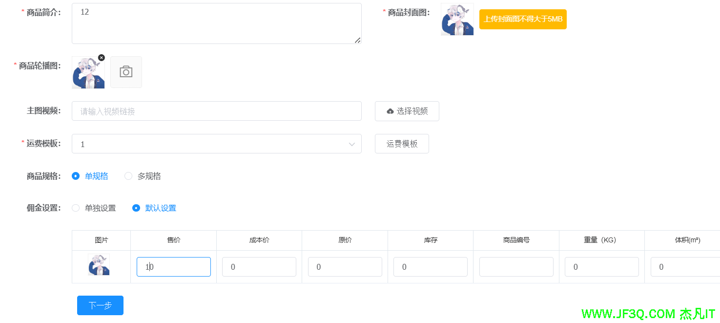 }提醒:可以考虑给某个商品添加封面的时候,把 id 传过来,不断覆盖替换旧的封面图片