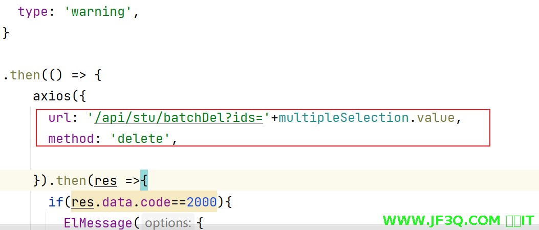 url: '/api/stu/batchDel?ids='+multipleSelection.value,
