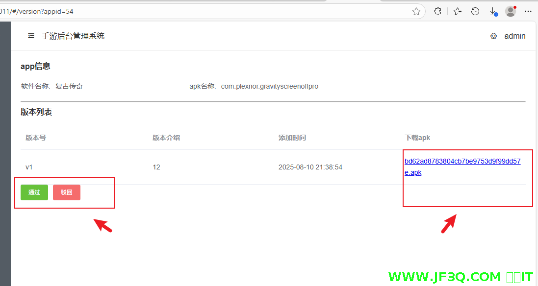 管理员端审核开发者上传上来的 apk ,审核通过后才能上架(上架下次课讲)