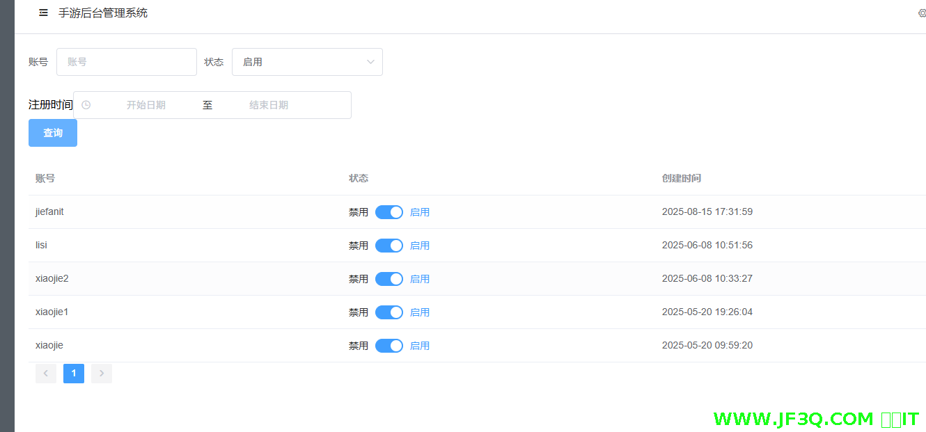 - 管理员可以对普通用户进行查询+禁用启用