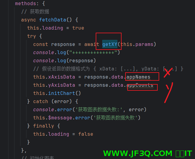 // 假设返回的数据格式为 { xData: [...], yData: [...] }
