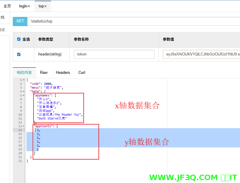 x 轴和 y 轴的数据一定要跟你的实际接口匹配