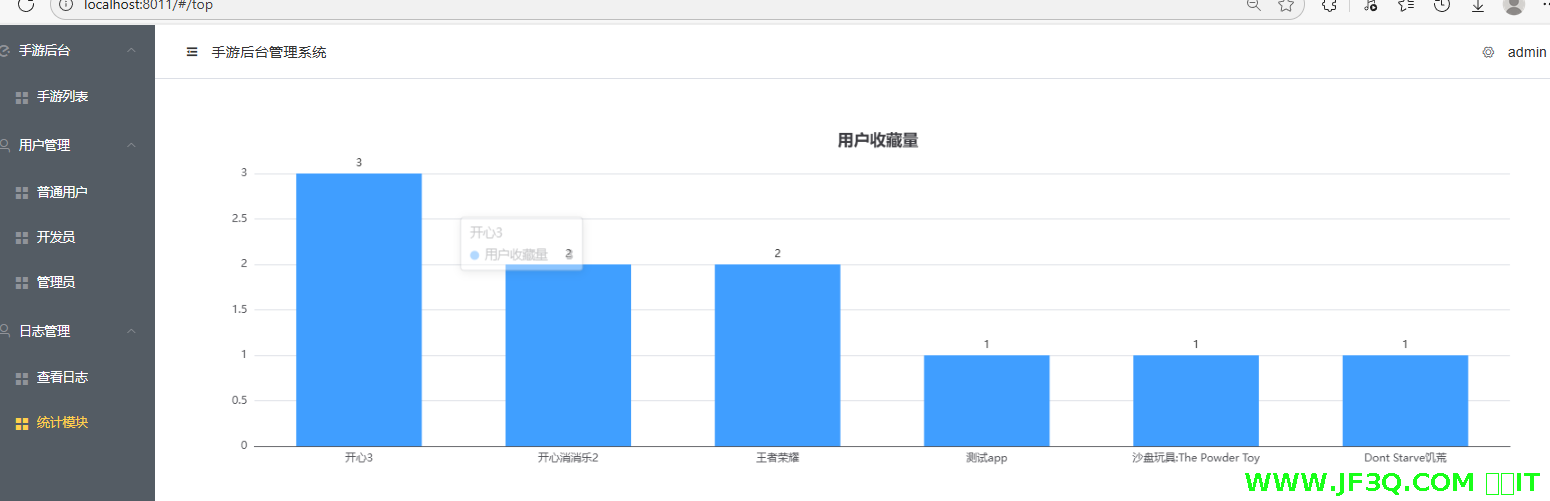 可视化统计功能-柱状图为例,用的echarts实现的。后端需要用到分组查询-group by