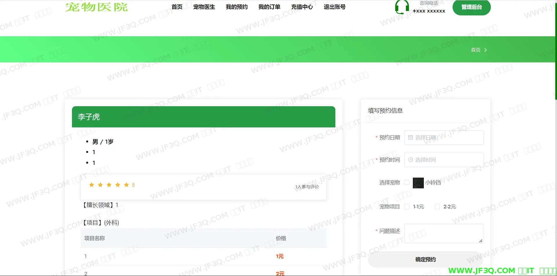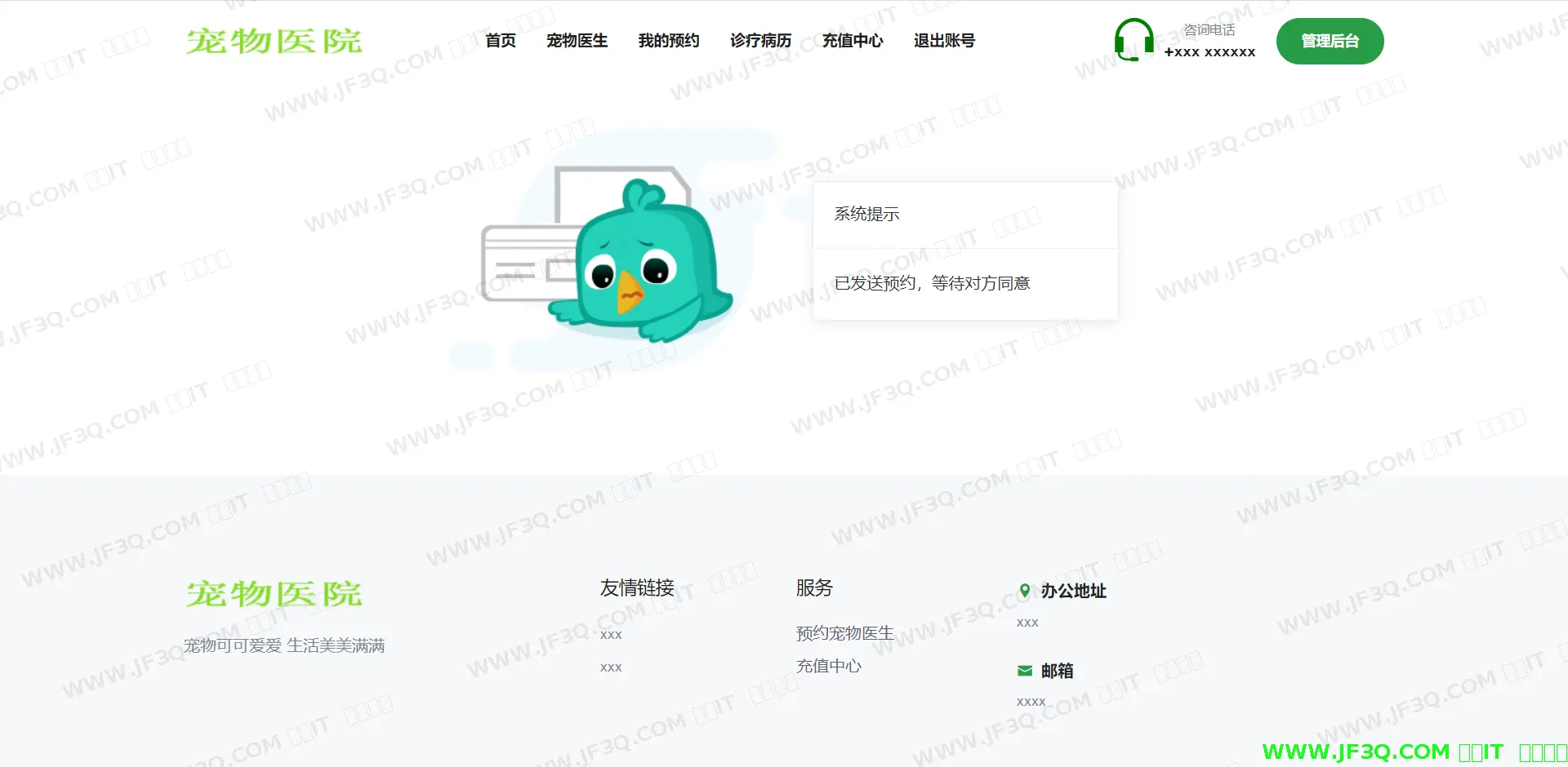 宠物医院管理以现代化宠物医疗服务需求为切入点,构建前后端分离、用户服务和医疗管理相结合的子平台和系统。用户服务搭建基于Web3.0技术框架的简单易用的UI界面,集宠物档案信息管理、在线预约挂号服务、诊断记录查询服务、诊断报告查阅服务等于用户服务子平台宠物主界面,方便宠物主获取服务。保证用户服务系统的数据安全,让用户方便地完成预约功能,同时能够清晰地显示预约流程,让用户即宠物主可以查看自己的预约状态、就诊流程等。提升其满意度。医疗管理搭建基于SpringBoot技术框架的医生和管理人员工作平台子平台等。医生排班服务医生出诊登记管理开处方服务通过其工作平台实现其医疗服务。子平台药物管理以数据库为数据源,实现其库存信息管理、预警提示等,避免造成不必要的损失。同时还具备数据分析功能,通过对就诊人数、疾病构成、用药量等进行数据分析后为医院管理提供参考,促进医院医疗资源的整合,促进医院服务水平的提高。
