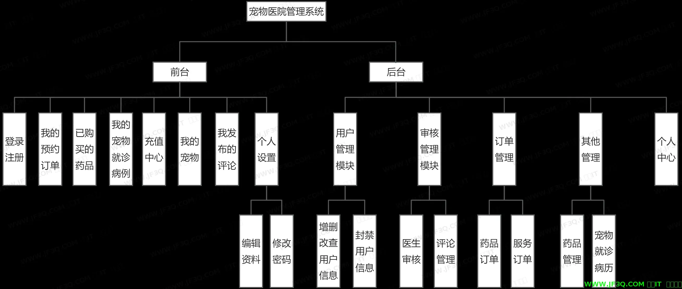 功能需求是系统应该实现的功能和提供的服务,是系统需要设计和实现的关键内容。在进一步调查了解宠物医院日常运行管理工作后,本系统的功能需求包括以下几个方面。
