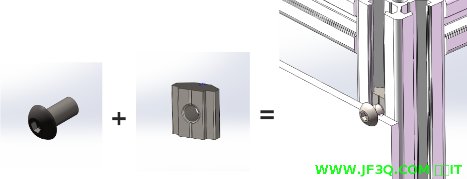 首先要对机架的型材框架进行设计。上节课中,我们掌握了怎样在SolidWorks中进行型材框架的建模;那么理论建模要怎么在现实中实现呢?前面有提到,型材框架是使用铝型材和各种配套标准件搭建起来的。下面我带大家快速过一下。