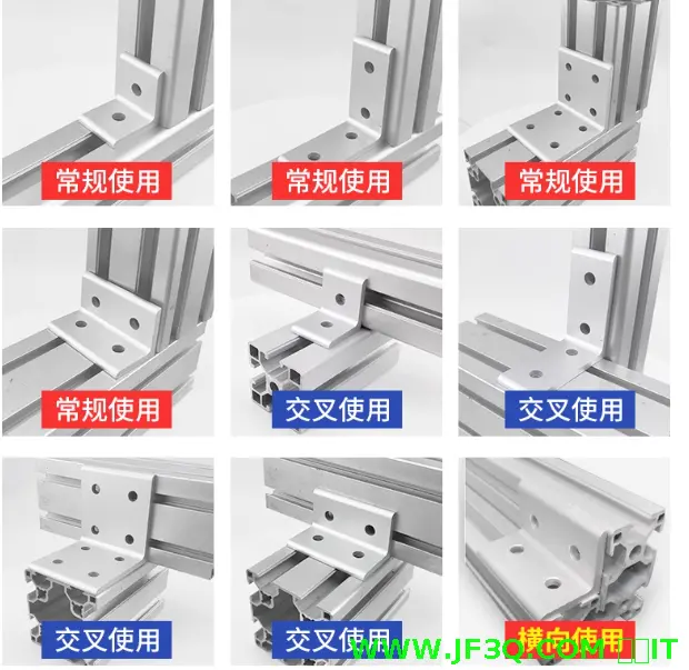 那除了角码,我们还有一种连接件,就是连接板。连接板就是直接固定型材与型材的了,有L型,T型,十字型。