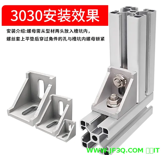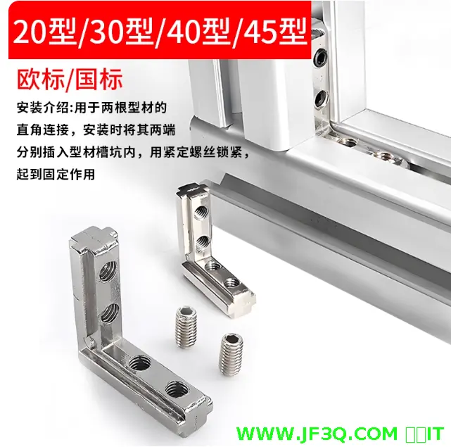 角码是在型材和型材相交的角的位置做连接的,也分很多种,最常见的就是这一种。它两边都有拉出来一个三角形的平面,可以理解为加强筋。