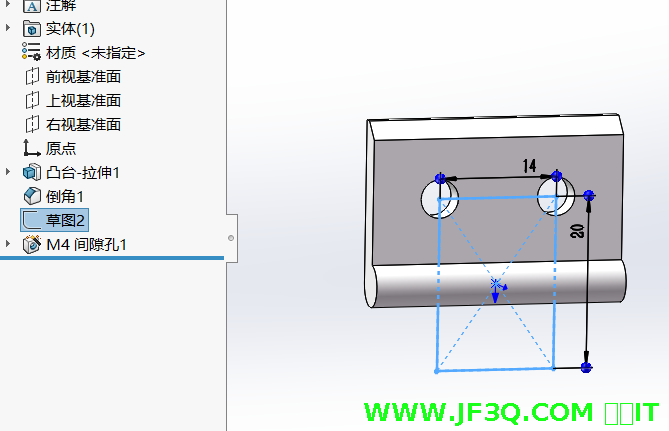 使用异型孔向导命令开孔,参考上文间隔块图纸,开孔数据为:板材向内8mm,M5间隙孔。
