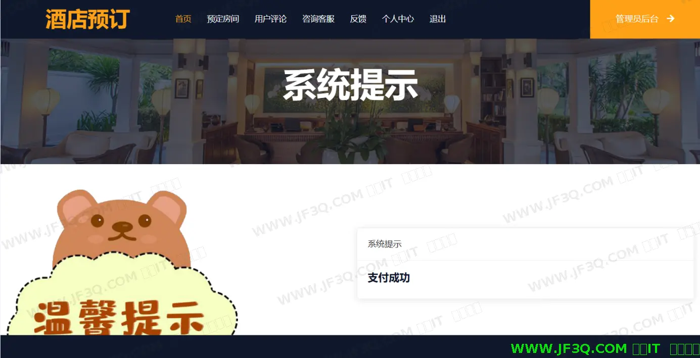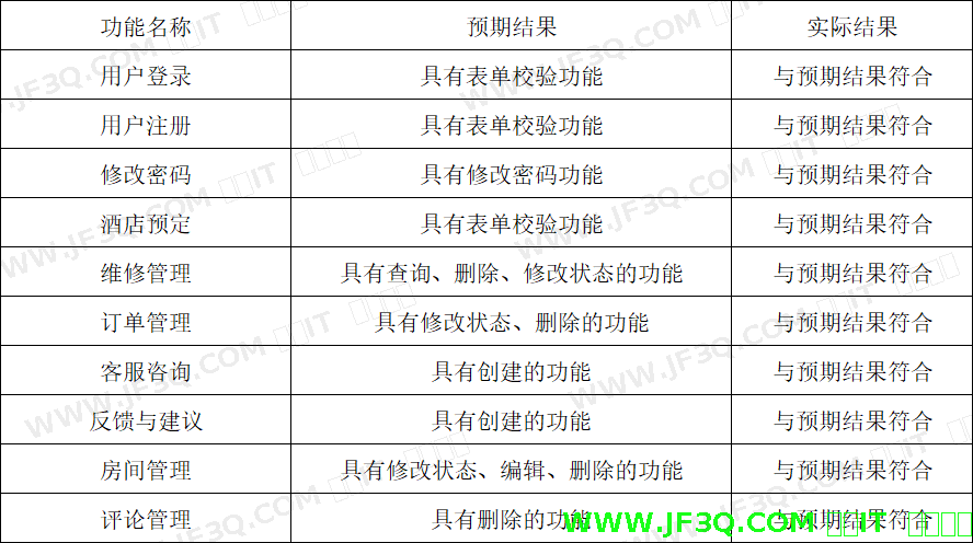 通过系统测试,酒店预订系统的功能得到全面验证,性能稳定性和数据可靠性均达到预期标准。系统在运行过程中可有效规避程序报错与逻辑冲突,各核心模块的功能实现完整且精准,满足酒店业务场景的设计需求。测试中发现的潜在问题已针对性修复,确保系统能够为用户提供高效、安全的客房预订服务。