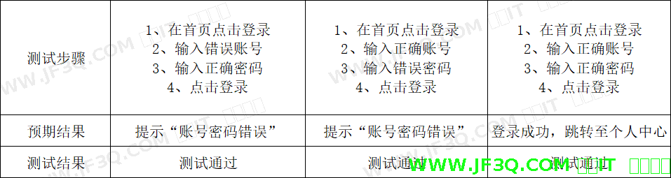(1) 用户登录测试用例表如下表6-2 所示: