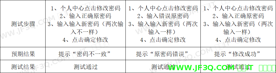 (2) 用户修改密码用例表如表6-3所示: