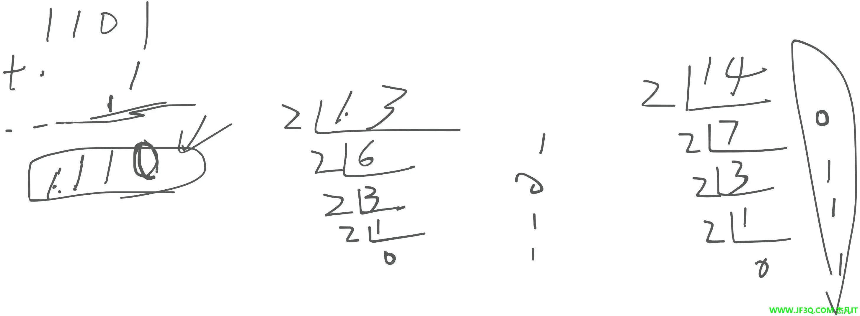 1 ÷ 2 = 0 … 余 1