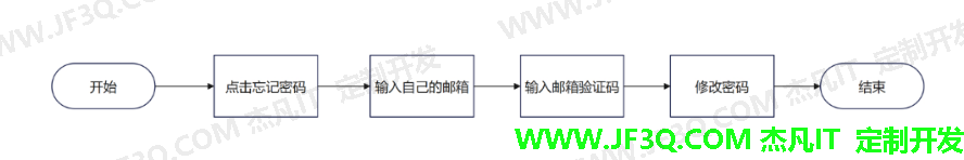 图3 登录注册流程图 4.1.2 忘记密码 用户登录时,如果不记得密码,可以点击忘记密码,通过验证与手机号绑定过得邮箱进行修改密码。流程如图4。
