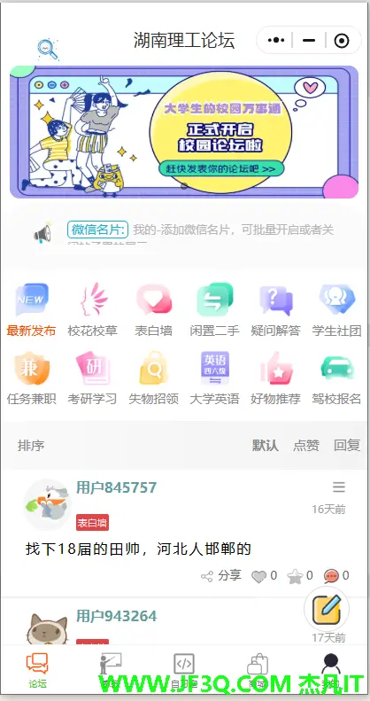 功能有点多。我们只拿其中的论坛模块带着大家走一遍。杰哥还是老规矩。从 0 带敲。手把手保姆级教学。