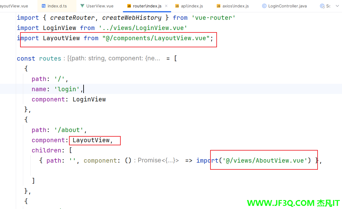 { path: '', component: () => import('@/views/AboutView.vue') },