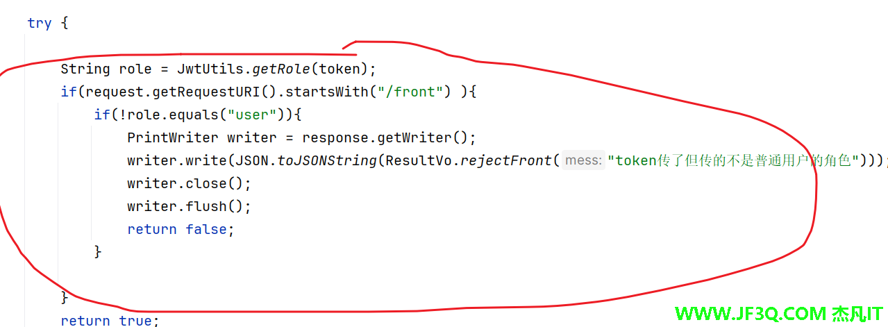 writer.write(JSON.toJSONString(ResultVo.rejectFront("token传了但传的不是普通用户的角色")));