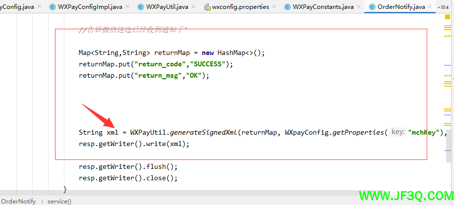 String xml = WXPayUtil.generateSignedXml(returnMap, WXpayConfig.getProperties("mchKey"), HMACSHA256);