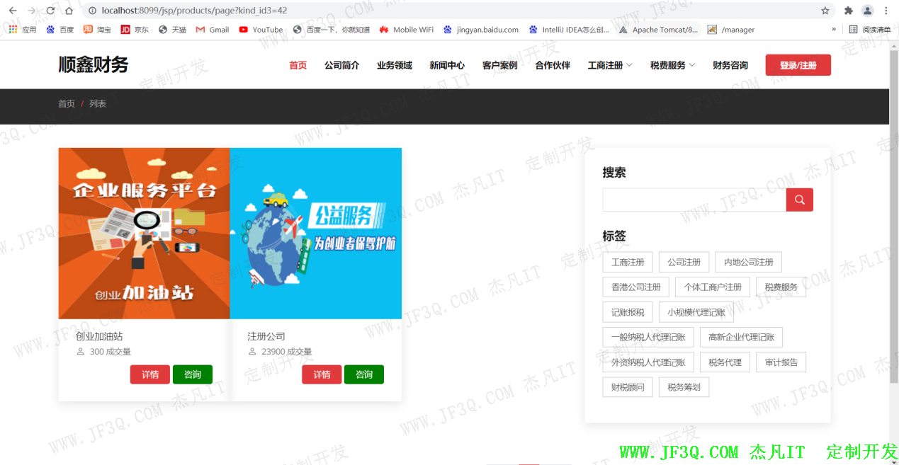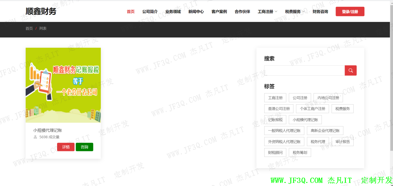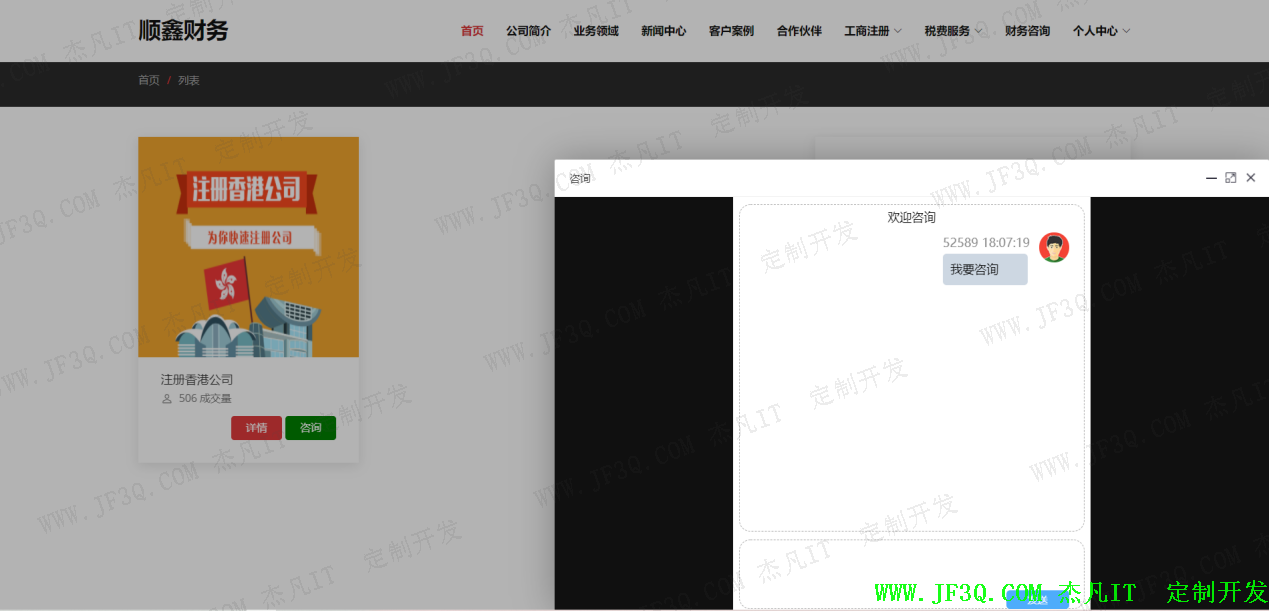 (6)公司注册:该模块包含各类服务模块,同时也支持立即咨询功能。