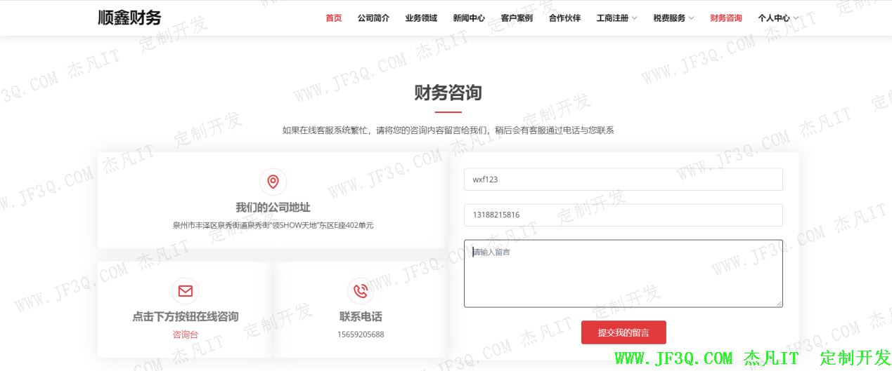 (2)业务领域:该模块用于显示顺鑫财务咨询公司的服务领域。