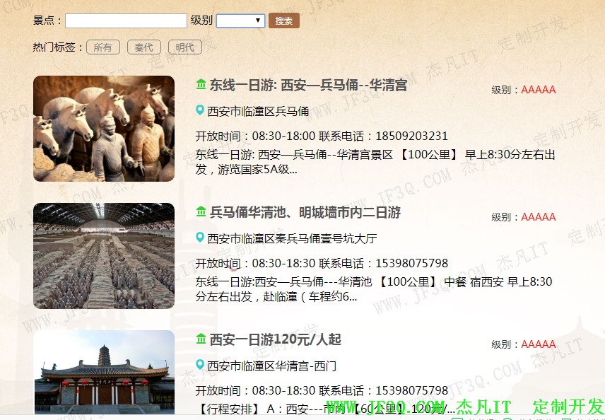 本系统采用B/S模式,基于SSH开发完成。包含了景区介绍,西安人文介绍,酒店查询,旅游路线规划等多种形式,来满足用户需求。
